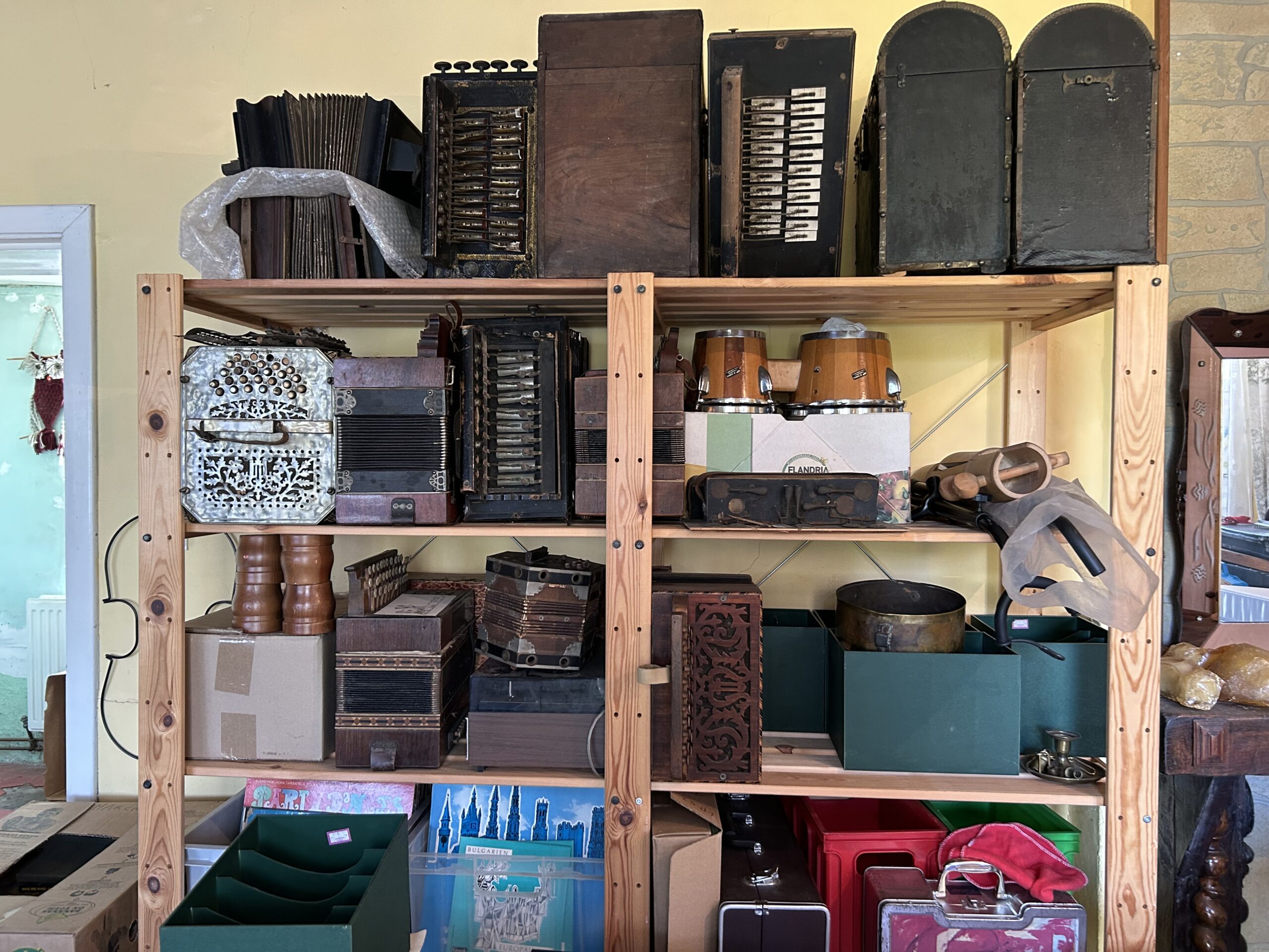 Joëlle Massin vend différents accordéons diatoniques jadis rassemblés par André Deru : deux Leva Giboreau, un Scheerlinck, un concertina, … ainsi que une cithare, des cuivres, des cds folk et autres, …