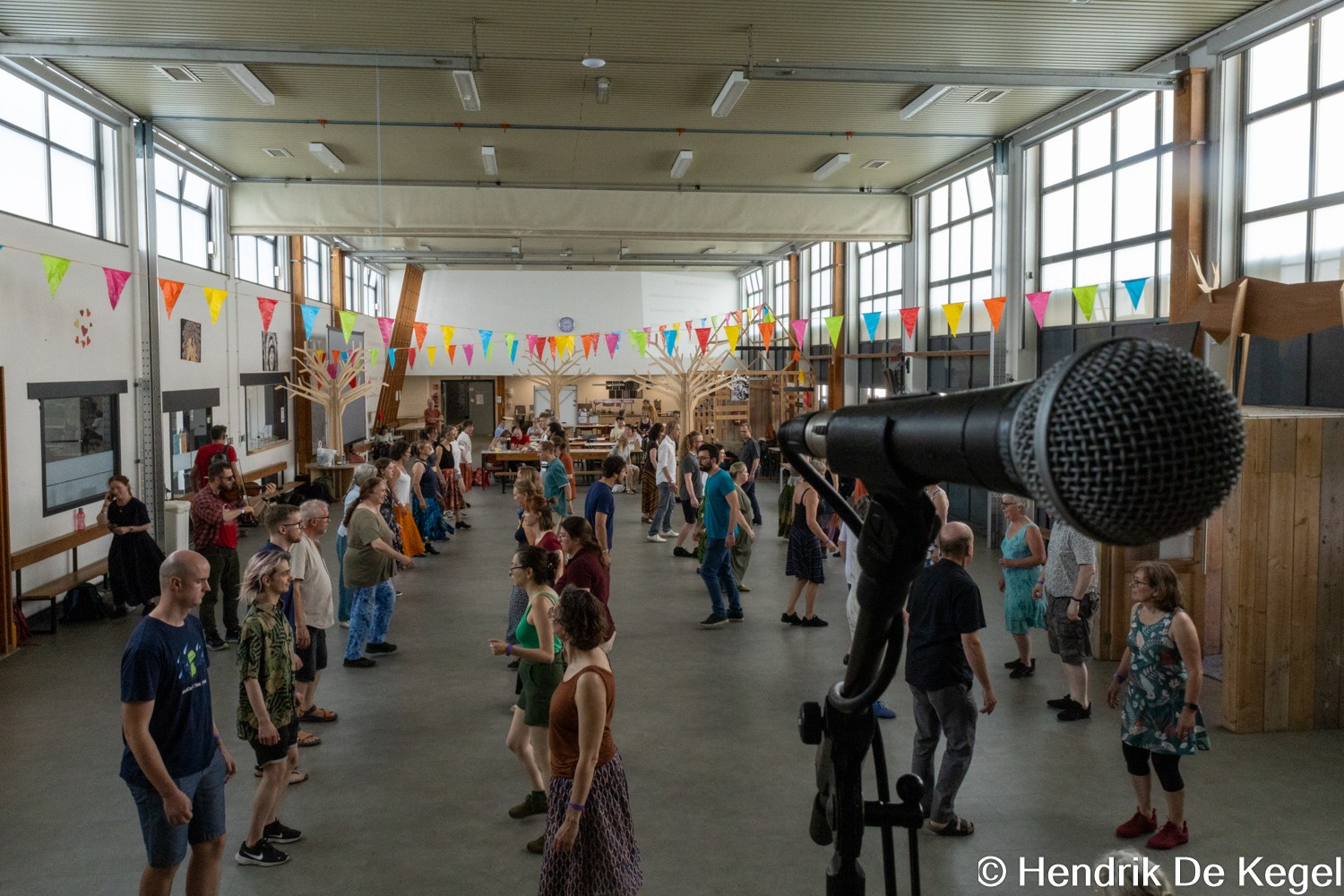 L’école secondaire De Prins nous offre beaucoup de facilités: des lieux pour ateliers, une cuisine, un dortoir, de bonnes toilettes, un espace de camping et dès cette année même deux belles salles pour danser. Il y a de la place pour 250 danseurs, et ça suffit pour pouvoir organiser un bon festival avec un budget raisonnable.
