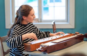 – Ingebjorg O. : Je viens de commencer à écrire ma propre musique, et l’utilisation de la langeleik occupe une place importante dans mon écriture. J’écris des paroles en norvégien et je fais des arrangements avec l’instrument. J’aimerais vraiment approfondir cela. Parallèlement, je pense qu’il est important d’utiliser l’instrument de manière traditionnelle, en jouant des airs de danse. Je n’ai pas encore beaucoup joué avec d’autres instruments traditionnels, car la langeleik pose des problèmes de volume sonore dans les grands groupes. Mais jouer avec plusieurs langeleiks peut être vraiment amusant.
